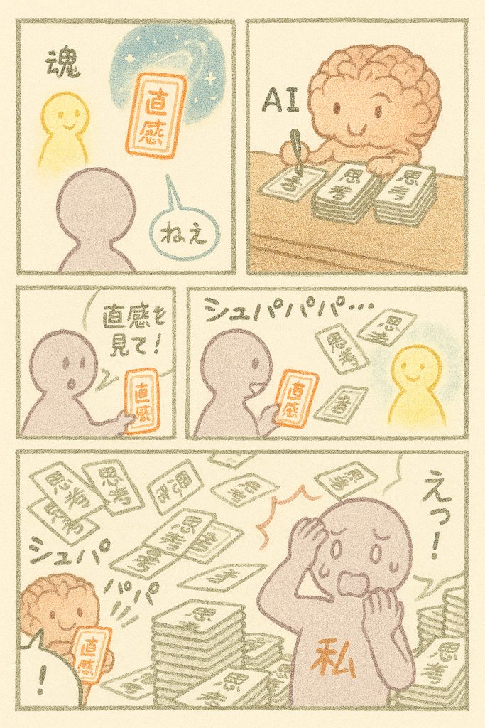 脳のAIが「思考カード」をシュパパパパッ!って大量に出してきて、